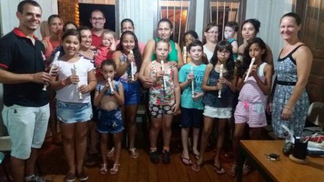 Oficina de flauta doce para os estudantes da rede municipal de ensino.
